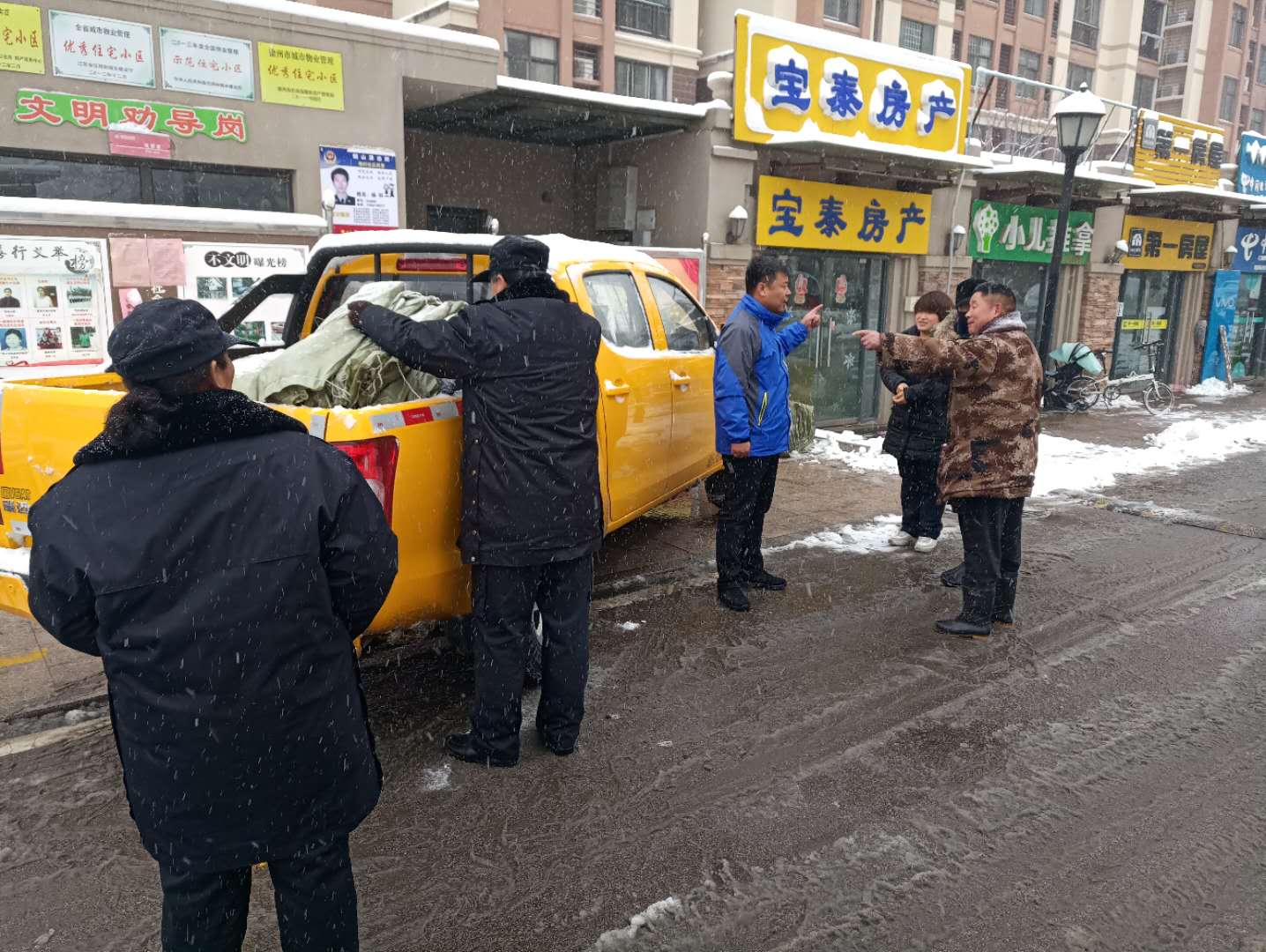工作人員走進居民小區,鋪設防凍草墊